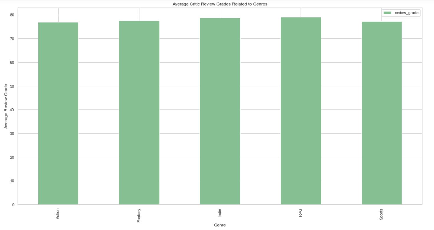 A deeper area to look into were the different critic grade and user grades that were presented depending on specific charactersitics that existed in each video game. Characteristics include: release date, title, developer etc.