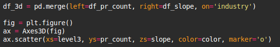 Again, I could see top industries (which means industry with most upward trend) and bottom industries. But What I really needed to see is industries which have relatively high news count and relatively high trend at the same time.