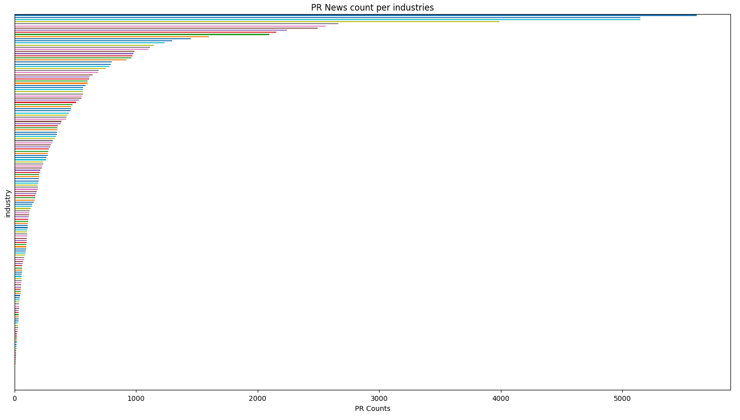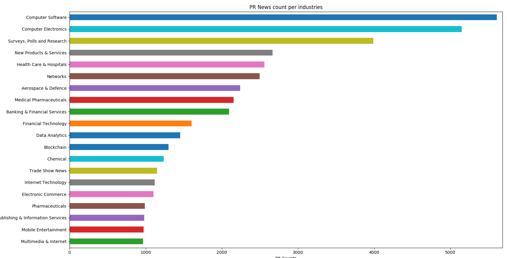 I could find the best industry based on my simple theory. But how credible is the result? I can not say "highly" because I could get data only just after April of this year. For some reason, PR News sites do not keep their news for a long time.