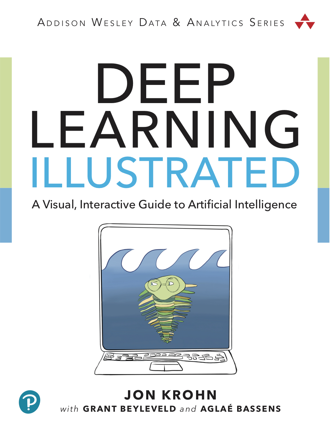 Deep learning is transforming software, facilitating powerful new artificial intelligence capabilities, and driving unprecedented algorithm performance. Deep Learning Illustrated is uniquely intuitive and offers a complete introduction to the discipline’s techniques. Packed with full-color figures and easy-to-follow code, it sweeps away the complexity of building deep learning models, making the subject approachable and fun to learn. World-class instructor and practitioner Jon Krohn—with visionary content from Grant Beyleveld and beautiful illustrations by Aglaé Bassens—presents straightforward analogies to explain what deep learning is, why it has become so popular, and how it relates to other machine learning approaches. Jon teaches his Deep Learning curriculum at the NYC Data Science Academy.