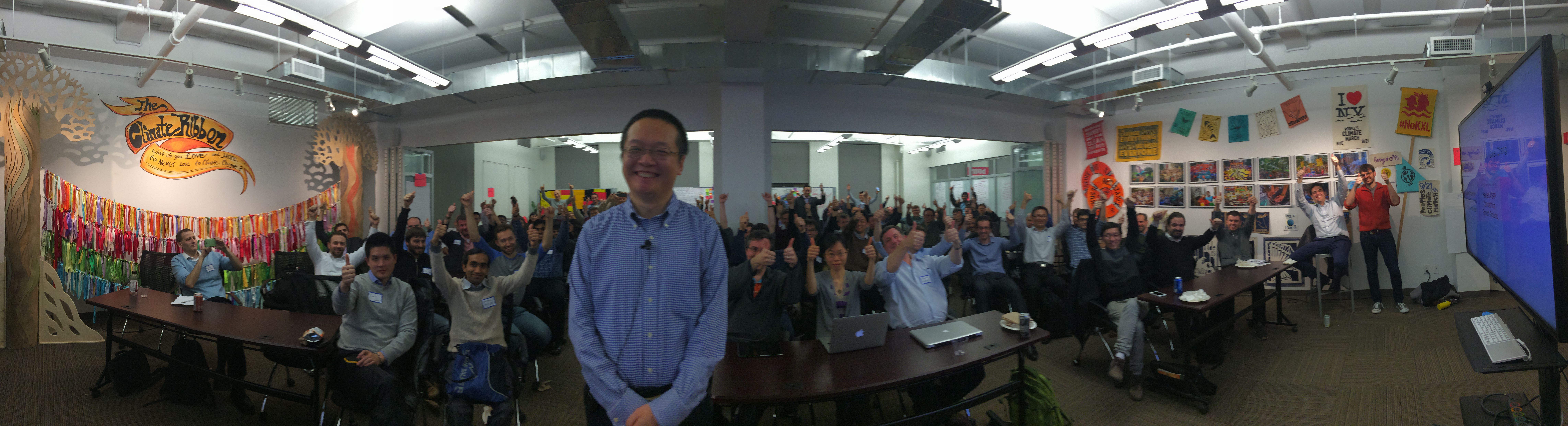 (Photo: As a tradition of the meetup, we voted for the outcome of the meetup. Thumbs are up in the air means " we are super happy and satisfied"!)